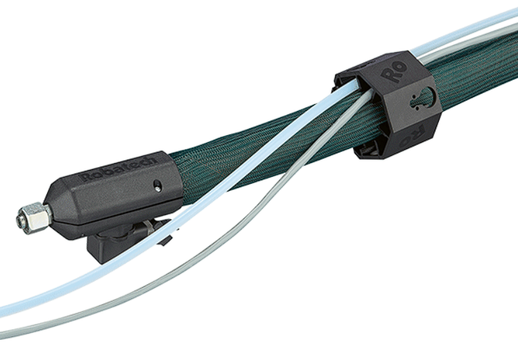 EasyFix hose mounts maximize the life span of hot melt hoses and therefore reduce downtime. This easy way of hose routing keeps the cables and tubes off the floor which prevents them from squeezing and crushing.