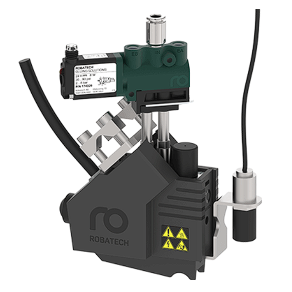 The IR 1.0 infrared sensor monitors the correct positioning and presence of the adhesive application by measuring the temperature of the liquid adhesive beads and signaling deviations.
