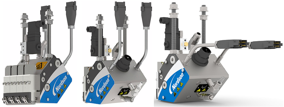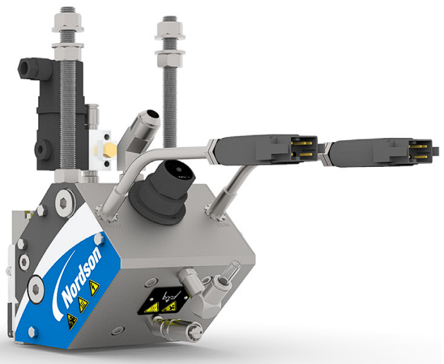 AltaSpray-c applicators provide the flexibility and performance capabilities of a single-platform, hot melt adhesive dispensing design. The applicators’ streamlined, economical configuration minimizes the initial investment and ongoing cost of ownership. Simplified system connectivity and fewer cabling requirements optimize the applicator’s use with AltaBlue™ series adhesive melters.