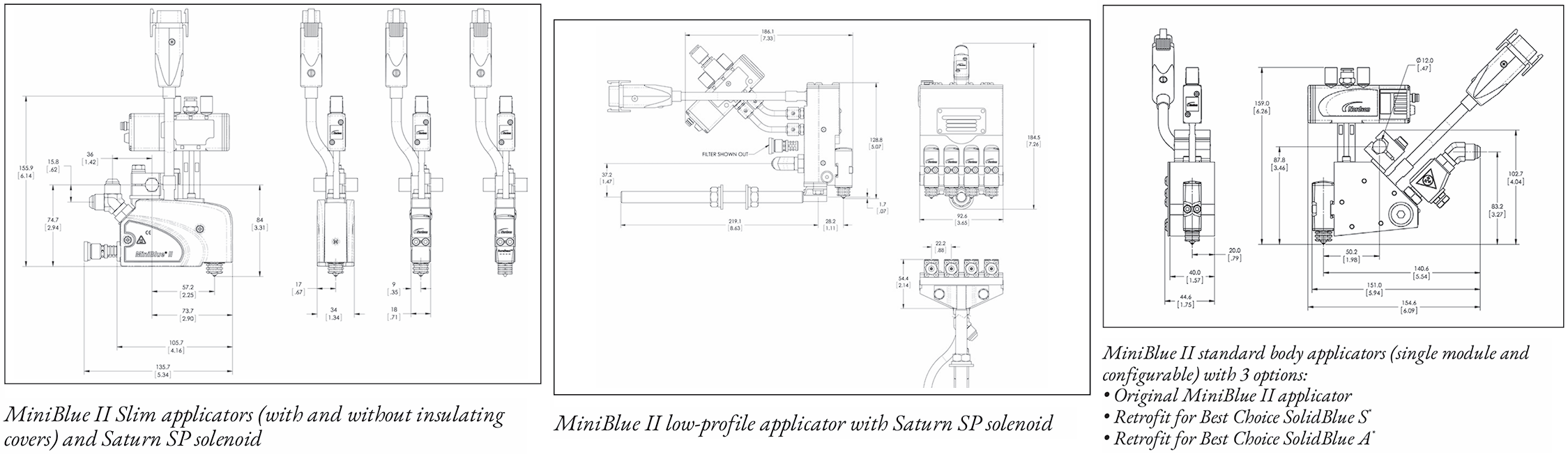 - MiniBlue II BAS modules accept easily removable Nordson Saturn nozzles