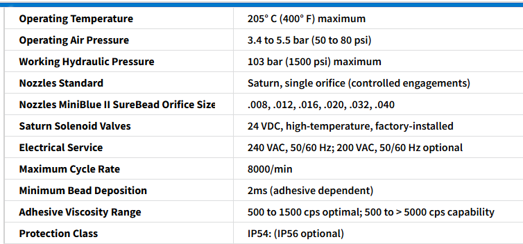 - ماژول‌های MiniBlue II BAS نازل‌های Nordson Saturn را که به راحتی قابل جدا شدن هستند، می‌پذیرند.