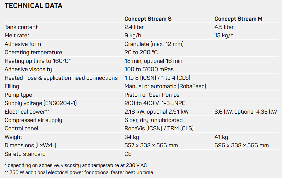 کانسپت استریم - راهکار «بدون مخزن» برای ذوب و پمپاژ چسبهای حرارتی ترموپلاستیک به شکل گرانول طراحی شده است. این دستگاه با حجم بسیار کم، سرعت ذوب بالایی را به دست میآورد. قلب کانسپت استریم، مخزن نوآورانه، کوچک و با کارایی بالا است. این مخزن به آرامی و بر اساس تقاضا ذوب میشود و بنابراین برای کاربردهای مصرف چسب بالا و پایین قابل استفاده است. کنترل حجم اختیاری، تغییرات مصرف چسب را کنترل میکند.